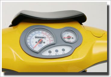 Überblick: Tachometer mit Kilometerzähler, Statuslampen für Blinker und Fernlicht, Batteriezustandsanzeige