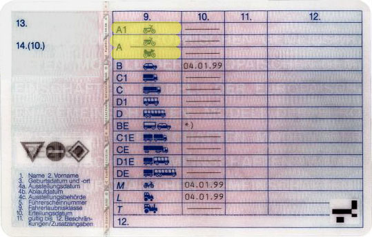Führerschein: Sie benötigen eine Fahrerlaubnis von den gelbmarkierten Klassen.